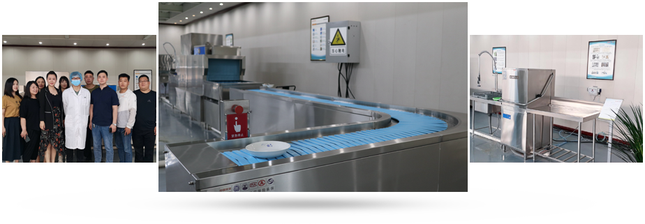 旭申長龍式洗碗機包括主洗+漂洗+烘干等模塊,功能齊全,一站式解決客戶餐具清潔的所有需求。